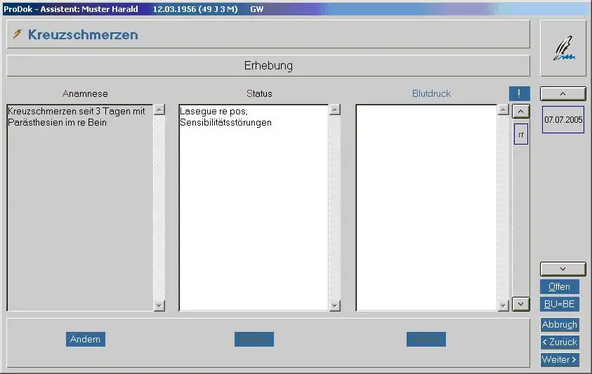 Der ProDok-Assistent erleichtert als strukturierte Eingabehilfe die systematische Dokumentation einer Gesundheitsstörung. Es erfolgt eine schrittweise Erfassung und Dokumentation der subjektiven (Anamnese) und objektiven Kriterien (Status) einer Krankheitserfassung. Einzelne Schritte können dabei im Bedarfsfall übersprungen und ausgelassen werden.