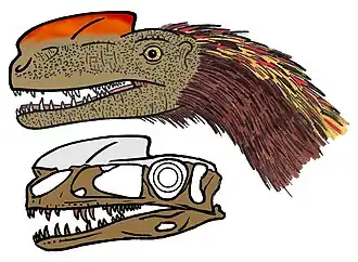 Künstlerische Lebendrekonstruktion des Schädels von Proceratosaurus bradleyi | ||||||||||||