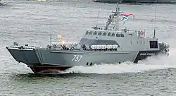 Projekt 21820 in voller Fahrt mit schießender Flugabwehr als Zuladung