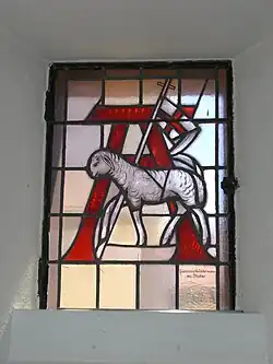 Beim Betreten des Kirchenraumes finden sich unter der Empore zunächst zwei kleine Fenster mit den stilisierten Buchstaben A und O. Alpha und Omega sind der erste und der letzte Buchstabe des griechischen Alphabets. Sie beziehen sich auf das letzte Buch der Bibel, die Offenbarung des Sehers Johannes (Ich bin das A und das O, spricht Gott der Herr, der da ist und der da war und der da kommt, der Allmächtige. Offenbarung 1,8)