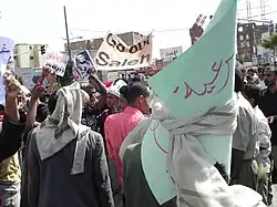 - ↑ Yemenis in anti-president protest ( des vom 4. Dezember 2012 im Webarchiv archive.today) Info: Der Archivlink wurde automatisch eingesetzt und noch nicht geprüft. Bitte prüfe Original- und Archivlink gemäß Anleitung und entferne dann diesen Hinweis., irishtimes.com, 27. Januar 2011
