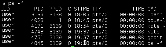 Ausgabe einer Unix-Shell beim Aufruf des Befehls ps -f