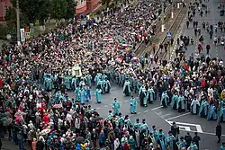 Großgrundbesitzerin mit der Ikone im Zentrum des Zuges -