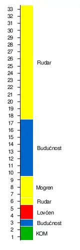 | 1. | FK Rudar Pljevlja | 33 | 22 | 5 | 6 | 56:26 | +30 | 71 |