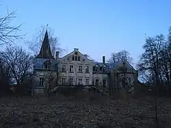 - Das Schloss Nieder-Prietzen (poln. Pałac w Przeczowie Dolnym) entstand in der zweiten Hälfte des 19. Jahrhunderts im Stil des Eklkletizismus. Die Grundmauern eines Vorgängerbaus wurden mit einbezogen. Das Schloss besitzt einen L-förmigen Grundriss und einen quadratischen Turm mit spitzen Helm. Das Schloss steht heute leer.[1]