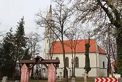 - Die römisch-katholische Herz-Jesu-Kirche (poln. Kościół Najświętszego Serca Pana Jezusa) wurde 1863 im neogotischen Stil errichtet.[6]