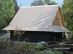 - Historischer Getreidespeicher aus Holz.