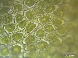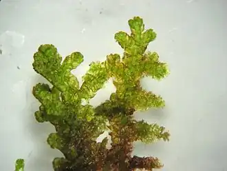 Blatt mit 3 gewimperten Blattlappen, mit 15 bis 20 Zellen am Lappengrund