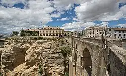 Der Puente Nuevo ist eine der touristischen Hauptattraktionen in Ronda. Die Steinbogenbrücke mit drei Rundbögen wurde im 18. Jahrhundert erbaut. Architekt war der Spanier José Martín de Aldehuela (1729–1802), der auch die Stierkampfarena in Ronda entwarf. Die Bauausführung wurde von Juan Antonio Díaz Machuca übernommen. Der Bau der Brücke begann 1751 und wurde 1793 abgeschlossen. Er forderte 50 Todesopfer unter den Bauarbeitern.[2][3]