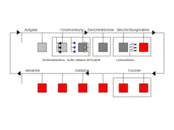 Schematische Darstellung des Ablaufs in einer Pulverbeschichtungsanlage