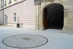„Im Jahre 1711, da Ferdinand Carl Graf von Welz Statthalter, Johann Franz Wenighofer Bürgermeister, Johann Sebastian Höpfer von Brandt Stadtoberkämmerer, und Georg Altschaffer Baumeister war.“ - Um den mit Laubwerk verzierten Rand stand, wobei bei „CCICC“ die letzten beiden „C“ umgedreht waren: