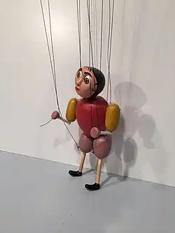 Im Rahmen der Kunstschule Staatliches Bauhaus entstanden Puppen im Bauhaus in unterschiedlichen Puppengenres. Dabei gilt es zu unterscheiden zwischen Puppen für künstlerische Darstellungen, wie beispielsweise im Marionettentheater, und Puppen, die als Spielzeug gedacht waren. Viele Bauhäusler versuchten sich in der Kunst der Puppenherstellung.[1] Derart entstanden zweidimensionale Puppen für Bühnenspiele, Handpuppen, Stabpuppen, Marionetten und Wurfpuppen. Bei Bauhausfesten verkleideten sich die Künstler häufig mit Masken oder Kostümen, die aus der Puppenwelt inspiriert wurden.[1]