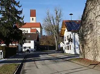![]() Neufarner Straße mit Kirche St. Laurentius