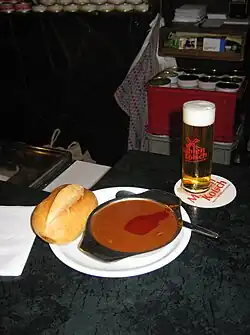 Auch der Gründer der Puszta-Hütte, Max Lippert, verkaufte seinen Gulasch ab dem Jahr 1948 aus einer improvisierten Hütte nahe dem Kölner Neumarkt an Straßenkundschaft. Bei dem Gericht handelt es sich nach Angaben des Restaurants um das überlassene Rezept einer ungarischen Bäuerin, bei der Lippert nach seiner Kriegsgefangenschaft in Ungarn Unterschlupf gefunden habe. Diese Suppe habe er in Deutschland nachgekocht und in den Verkauf gebracht.[2]
