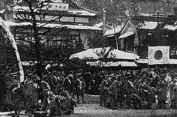 Die „Rechtmäßige Armee“ (義軍, gigun), der Kollektivnahme von Kōdō-ha und Kokutai Genri-ha, bestand somit aus 1.558 Männern. Die damals angegebene Zahl von 1.483 exkludiert die 75 Männer, die unter Führung Nakahashis vergeblich versuchten, den Kaiserpalast einzunehmen.[47]