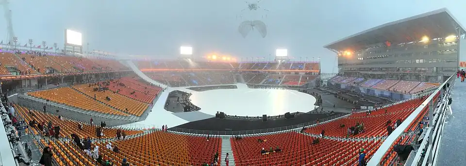 - ↑ Duncan Mackay: Pyeongchang 2018 move venue for Opening and Closing Ceremonies. In: insidethegames.biz. 6. Juli 2012, abgerufen am 3. Mai 2020 (englisch).