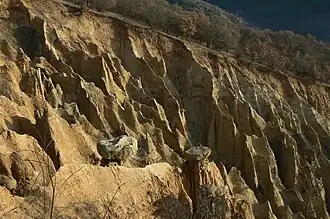 Die Pyramiden auf dem nördlichen Abhang des Bergrückens sind besser herausgearbeitet, da sie viel kleiner sind. Die meisten Paramiden liegen auf dem südlichen Abhang. Hier sind die Pyramiden größer und stehen dichter. Der Boden hat eine gelblich-braune Farbe, die stellenweise zwischen rostbraun, rötlich und dunkelgelb variiert. Besonders schön sehen die Pyramiden bei Sonnenuntergang und bei Mondlicht aus.