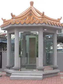 ). Die Stele ist von einem kleinen Pavillonbau überdacht.[19] In Qieding gibt es mehrere, als sehenswert geltende Tempel. Der daoistische Wanfu-Tempel (萬福宮,