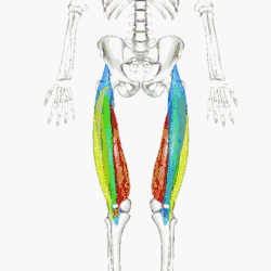 - Musculus vastus medialis (lat.: zur Mitte gelegener breiter Muskel) entspringt an der Innenseite des Oberschenkelknochens.