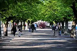 Am Bürkliplatz findet sich die Anlegestelle der Zürichsee-Schiffahrtsgesellschaft. Die Stadthausanlage,[10] der Platz mit dem historischen Musikpavillon wird für zahlreiche kulturelle Veranstaltungen, Events und den traditionellen Wochen- und Flohmarkt genutzt. Auf der Bürkliterrasse, der erhöhten Plattform direkt am Ufer steht das Ganymed-Denkmal (1952) von Hermann Hubacher.