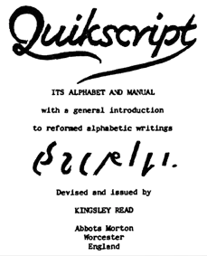 - Kingsley Read: Quikscript. Its Alphabet and Manual with a general introduction to reformed alphabetic writings, Abbots Morton/Worcester/England (1966)