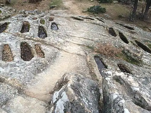 - Beim ca. 5 km südöstlich gelegenen Weiler (pedanía) Comunero de Revenga befindet sich eine weitere Nekropole mit über 100 Gräbern. In der Bodenplatte befindet sich überdies ein rundes Taufbecken (pila bautismal).