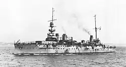 Als Motor dienten eine Dreifach-Expansions-Schiffsdampfmaschine, welche über drei Schiffsschrauben die Antriebskraft übertrugen. Auf den Einbau von größeren Decksaufbauten wurde verzichtet, weil diese zu schwer für die Rumpfkonstruktion des Schiffes gewesen wären. 12 der 16,5-cm-Geschütze waren in 6 Zwillingstürmen auf dem Vorder- und Oberdeck verbaut. Zwei weitere der 16,5-cm-Geschütze befanden sich im vorderen Oberdeck und vier weitere im Hauptdeck des Schiffes.