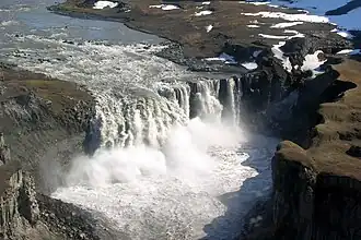 Die Jökulsá á Fjöllum stürzt hier um 12 Meter[1] in die Tiefe. Stromaufwärts liegen der Hafragils-, der Detti- und der Selfoss. Unterhalb kommt noch der Vígabjargsfoss, bevor die Jökulsá á Fjöllum in den Öxarfjörður strömt.