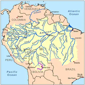 Wichtige Nebenflüsse des Río Grande sind die Flüsse San Pedro, Chayanta, Chico, Charobamba, Tomina, Mizque, Azero, Pailas und Yapacani.
