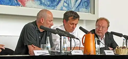 - 2011: 39. Gefällt mir nicht. Demokratie auf dem Prüfstand.[69] Teilnehmer: Heinz Bude, Erik Buhn, Nicole Deitelhoff, Wilhelm Heitmeyer, Paul Ingendaay, Eva Kimminich, Claus Leggewie, Werner Plumpe, Frank Rieger. Moderation: Alf Mentzer; INTERVENTION: Der Optimismus der Ingenieure. Wieviel Risiko ist verantwortbar?[70][71] Teilnehmer: Patrick Bahners, Ralf Bönt, Wolfgang Bonß, Daniel Cohn-Bendit, Petra Gehring, Manfred Hampe, Oliver Lepsius, Joachim Radkau, Klaus Vondung[72], Harald Welzer. Moderation: Alf Mentzer