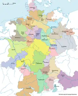 Infolge des im Augsburger Religionsfrieden und im Westfälischen Frieden festgelegten Regionalprinzips ist Deutschland immer noch konfessionell regional getrennt. Diese Spaltung ist jedoch nach der Integration der Heimatvertriebenen und Flüchtlinge aus den Ostgebieten des Deutschen Reiches nach dem Zweiten Weltkrieg weniger ausgeprägt als noch zu Anfang des 20. Jahrhunderts. Man kann den Süden und Westen als tendenziell katholisch bezeichnen (z. B. Bistum Passau mit 74,1 %, Bistum Aachen 50,8 % Katholikenanteil 2018). Die Einwohner der neuen Bundesländer sowie Berlins, Schleswig-Holsteins, Hamburgs und Bremens gehören überwiegend keiner der (beiden großen) christlichen Konfessionen an (Stand 2019).[19][20][21]