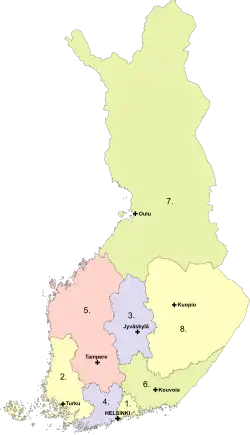 Aktuell gibt es acht römisch-katholische Pfarrgemeinden in Finnland (mit Pfarrkirchen):[4]