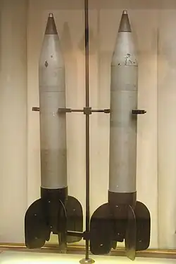 - ↑ Wolfgang Thamm: Fliegerbomben. Die Spreng- und Brandbombenentwicklung in der Luftwaffe; Von der einfachen Fliegerbombe zur modernen Abwurfmunition und ihre Einsätze - mit Gegenüberstellung der Entwicklungen in England, USA und Russland sowie anderer Staaten. Bonn 2003, S. 220.