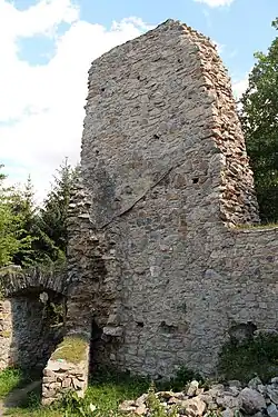 - Burgruine Rabštejnek (Rabstein), die seit 1405 nachweisliche Burg wurde 1585 verlassen