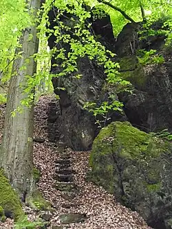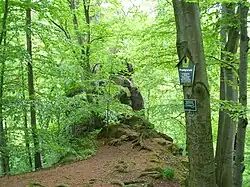 - Der Predigtstuhl unterhalb des heutigen Rabenauer Ortsteils Siedlung Waldfrieden diente im Dreißigjährigen Krieg 1639, als die Schweden Rabenau heimsuchten, zum Schutz der Einheimischen, die sich mit dem Rabenauer Pfarrer Anton Bodenhäuser[10] hier versteckten. Er predigte ihnen vom erhöhten Stein, um in der Verzweiflung ihnen einen Hoffnungsschimmer zu geben.