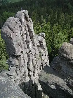 Die nördliche Felsengruppe wird durch den bedeutendsten Felsen der Gruppe die Fellerwand (Fellerova věž) dominiert. Im südlichen Teil dominieren der Rabe (Krkavec) und die hohen Rabensteine, auch Schachttürme (Šachtové věže) genannt. Eine imposante Erscheinung ist auch die schwer zu besteigende Bergfreikuppe, die wegen ihrer Form auch Birne (Hruška) genannt wird.