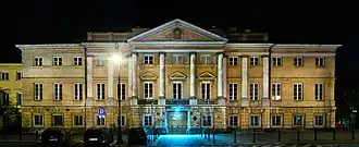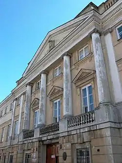 1787 gelangte das Gebäude in den Besitz des Generals Filip Nereusz Raczyński[5], der es bald darauf an seinen Vetter und Schwiegervater, den Hofmarschall Kazimierz Raczyński[6] weitergab. Von 1786 bis 1789 wurde der Palast nach einem Entwurf von Johann Christian Kamsetzer für den neuen Besitzer von Grund auf im klassizistischen Stil umgestaltet. Von der damals angefertigten Inneneinrichtung ist besonders der klassizistische Ballsaal mit seinen Stuckarbeiten und allegorischen Gemälden zum Thema Rechtswesen in der Beletage erwähnenswert.[7]