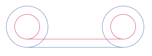 Aus physikalischer Sicht entspricht der zurückgelegte Weg des betrachteten Punktes nur dann dem Radumfang, wenn eine echte Rollbewegung vorliegt. Dies ist für beide Räder aber nicht gleichzeitig möglich. Rollt das große Rad auf dem Boden ab, führt das kleinere Rad entlang der gedachten Linie zusätzlich eine gleitende Bewegung aus. Umgekehrt dreht das große Rad teilweise durch (Schlupf), wenn das kleinere Rad abrollt.[2]