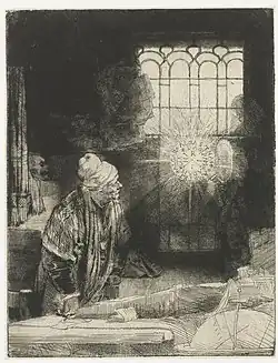 Hohe künstlerische Reife der Ätztechnik und der Kaltnadeltechnik erreichte Rembrandt. Interessant ist bei ihm die künstlerische Nutzung der Plattenzustände als „work in progress“. Mit Rembrandt veränderte sich die Radierung vom Reproduktionsmittel zum eigenständigen künstlerischen Ausdrucksmittel. Weil der Radierung die „Kälte“ des Kupferstichs fehlt, wurde diese zunehmend als eigenständige und ursprüngliche Ausdrucksform von Sammlern des zu Wohlstand gekommenen Bürgertums im 17./18. Jahrhundert sehr geschätzt. Besonders Rembrandt bediente diesen „Markt“ derer, die sich seine Ölgemälde nicht leisten konnten, zunächst mit Reproduktionen, aber sehr bald auch mit eigenständigen radierten Werken, deren Formate oft nur die Größe einer halben Postkarte besitzen.