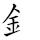 Das Piktogramm zeigt vier Goldstücke oder Metallstreifen in der Erde. Darüber befindet sich eine Überdachung. Bei der Vereinfachung des Zeichens sind nur noch zwei Goldkörnchen übrig geblieben. Das moderne Kurzzeichen ist zwar stark vereinfacht, lässt aber immer noch seine Herkunft erkennen. Mit / werden Zeichenverbindungen von U+91D1 bis U+9484 codiert, anschließend daran mit von U+9485 bis U+9576.