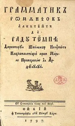 - Grammatică românească alcătuită de Radu Tempea, Directorul Școalelor Neunite Naționalicești prin Marele Prințipat al Ardealului, Sibiu (Hermannstadt) 1797