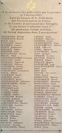 - ↑ Lyon: une plaque pour les victimes de la rafle du 9 février. In: 20minutes.fr. 14. Februar 2011, abgerufen am 16. Februar 2019 (französisch).