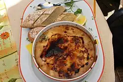 Ragout ([], von französisch ragoûter ‚den Gaumen reizen‘, ‚Appetit machen‘) ist eine Gerichtsgattung von würfeligen Fleisch-, Geflügel-, Wildbret- oder auch Gemüsestücken in einer oft sämigen Sauce.[1][2] Der Begriff wurde im 17. Jahrhundert aus dem gleichbedeutenden französischen ragoût entlehnt.[3]