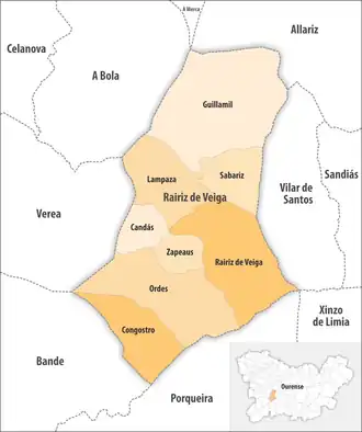 Die Gemeinde Rairiz de Veiga ist in acht Parroquias gegliedert: