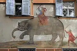 Mit Blick auf die Fassade des Hotels Elephant in Brixen denkt Rajagopal, der in seiner Kindheit von Elefanten umgeben war, über das ungerechte Schicksal Rajas nach.