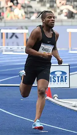 2022 nahm Angela in den USA an seinen ersten Weltmeisterschaften teil. Als Fünfter seines Vorlaufes erreichte er dort das Halbfinale, verpasste darin als Vierter seines Laufes den Einzug in das Finale.[3] Später trat er zudem mit der 4-mal-400-Meter-Staffel an. Das niederländische Quartett verpasste als Neuntplatziertes nach den Vorläufen nur äußerst knapp den Einzug in das Finale.[4] Einen Monat später trat er bei den Europameisterschaften in München an und erreichte das Halbfinale im Hürdenlauf. Darin schied er allerdings als Letzter seines Laufes aus.[5] Anschließend landete er mit der niederländischen Staffel im Finale auf dem fünften Platz. 2023 nahm Angela als Staffelläufer zum zweiten Mal an den Halleneuropameisterschaften teil. Mit der niederländischen 4-mal-400-Meter-Staffel konnte er im Finale die Bronzemedaille gewinnen. Ende August belegte er mit der niederländischen Staffel den sechsten Platz bei den Weltmeisterschaften in Budapest. 2024 konnte Angela mit der Staffel im Frühjahr die Bronzemedaille bei den Hallenweltmeisterschaften in Glasgow gewinnen.