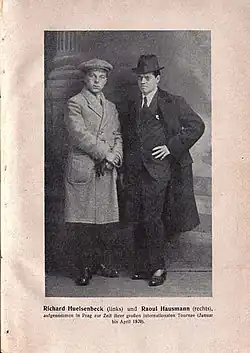 1918 gründete Hausmann zusammen mit Richard Huelsenbeck, Johannes Baader und anderen den Berliner Club Dada. Er wurde ein wichtiges Mitglied der Dada-Bewegung in Berlin, der er von 1918 bis 1922 angehörte. Hausmann war Mitherausgeber der Zeitschrift Der Dada und des Prospekts Club Dada. Bei Dada-Veranstaltungen trug er erstmals öffentlich seine Manifeste und Lautgedichte vor. Seine optophonetischen Plakatgedichte wurden gedruckt. In Berlin lebte und arbeitete er ab 1917 zusammen mit Hannah Höch, mit der er die künstlerische Fotomontage entwickelte. In Kurt Schwitters, Hans Arp und Otto Freundlich fand Hausmann Freunde.[3]