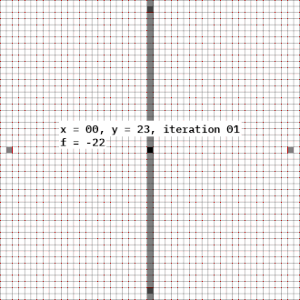 Die neue vorgestellte Methode[11] kommt mit nur 5 Rechenoperationen pro Schritt (für 8 Pixel) aus und ist damit gerade für niedrigperformante Systeme bestens geeignet. In der "Wenn" Operation wird nur das Vorzeichen geprüft (positiv? Ja oder Nein) und es gibt eine Variablenzuweisung, was auch nicht als Rechenoperation gilt. Die Initialisierung in der ersten Zeile (Geschiebe um 4 Bits nach rechts) ist nur der Schönheit geschuldet und nicht wirklich nötig.