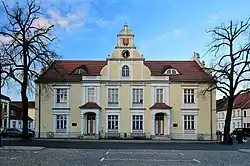 Das Gebäude befindet sich im Kern der Fürstenberger Altstadt auf dem Marktplatz. Der ehemalige Sitz der Fürstenberger Verwaltung ist ein zweigeschossiger verputzter Massivbau, der um 1900 im Stil der Neorenaissance errichtet wurde. Rückseitig befindet sich die im gleichen Stil errichtete ehemalige Feuerwache.