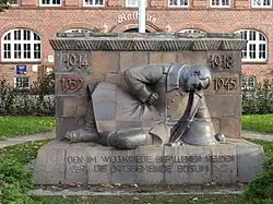 Vor dem Gebäude liegt der Kaiser-Wilhelm-Platz mit einem Ehrenmal für die Gefallenen des Ersten und Zweiten Weltkriegs.
